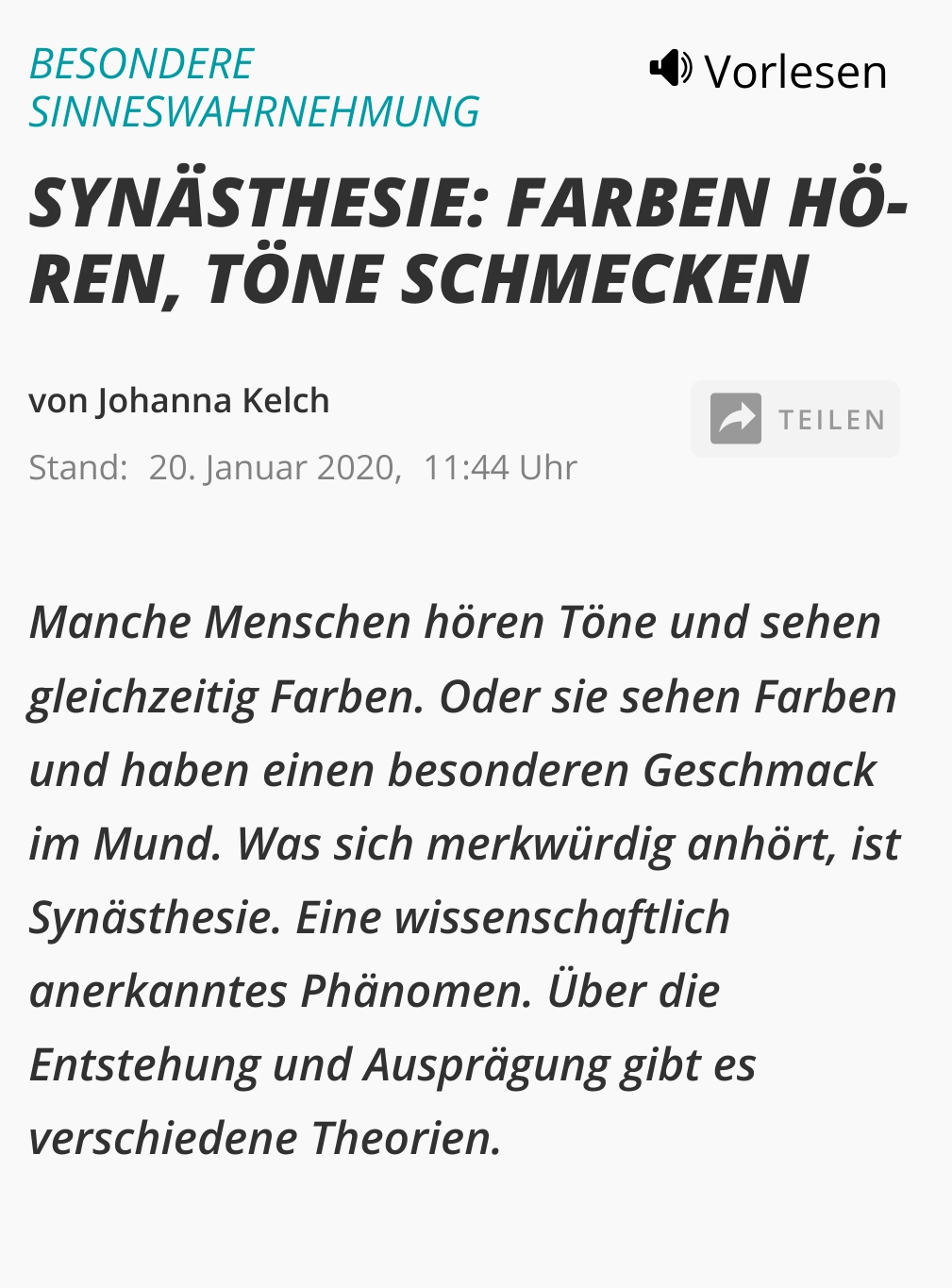Synästhesie-Farben hören, Töne schmecken
